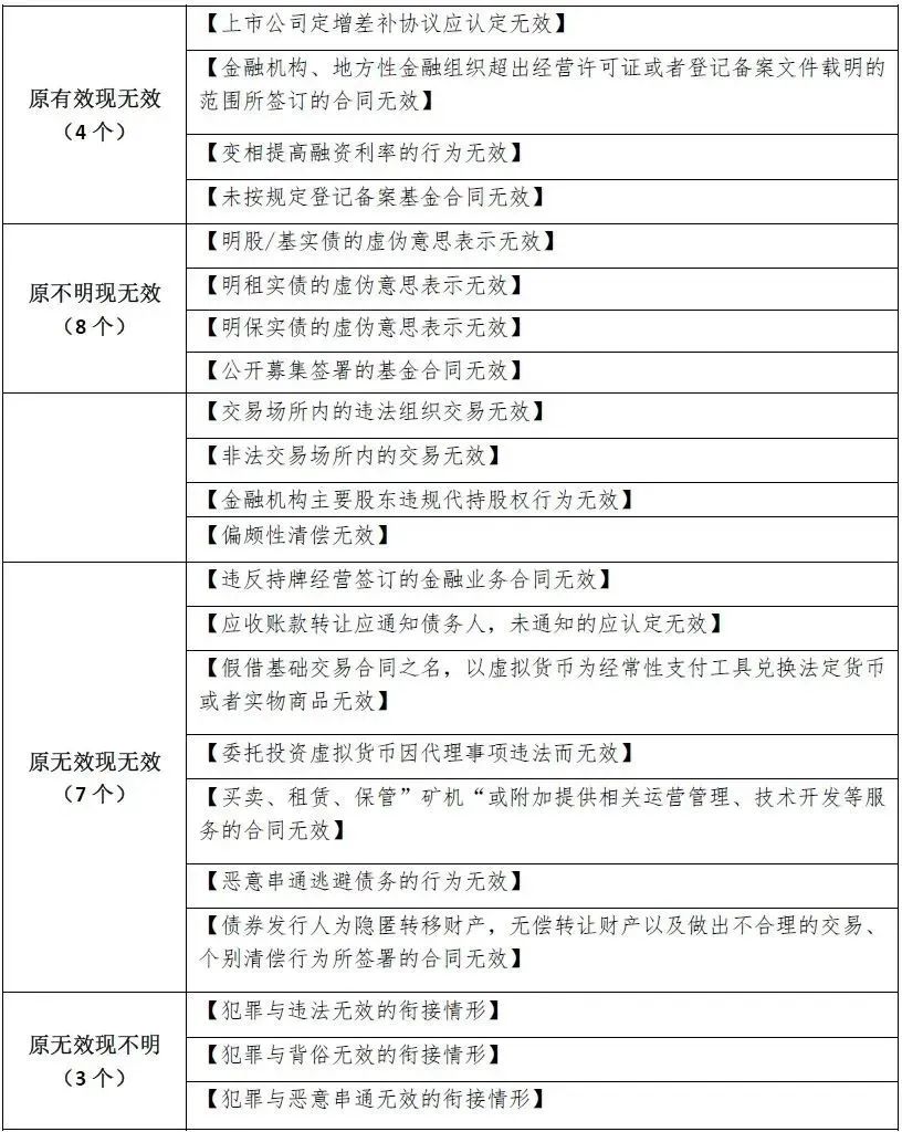 《全国法院金融审判工作会议纪要(征求意见稿)》中的22个无效合同