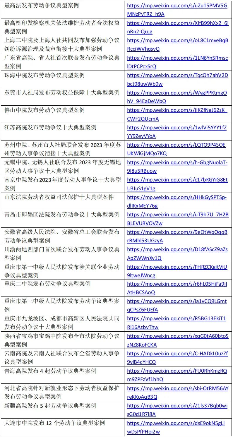 各地法院劳动争议典型案例发布汇总