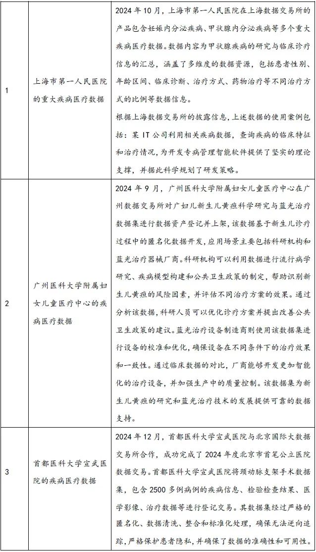 近年来,多家医院开展了数据资产项目,并成功交易数据产品。例如首都医科大学宣武医院,北京清华长庚医院、北京胸科医院、上海市第一人民医院、广东省人民医院等进行了治疗数据、专病数据、后勤运营数据、流行病数据等数据资产化项目,健康医疗数据资产化工作趋近成熟。