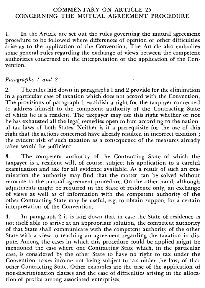 1963年7月30日经OECD理事会通过的《OECD税收协定范本草案》[2]首次出现MAP相关内容。当时的第25条包含4款: