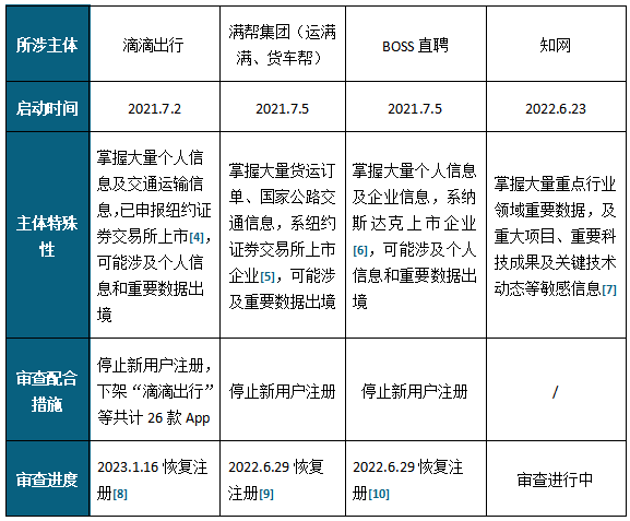 在美光公司被启动网络安全审查前,由网络安全审查办公室依职权启动的历次网络安全审查概况如下[3]: