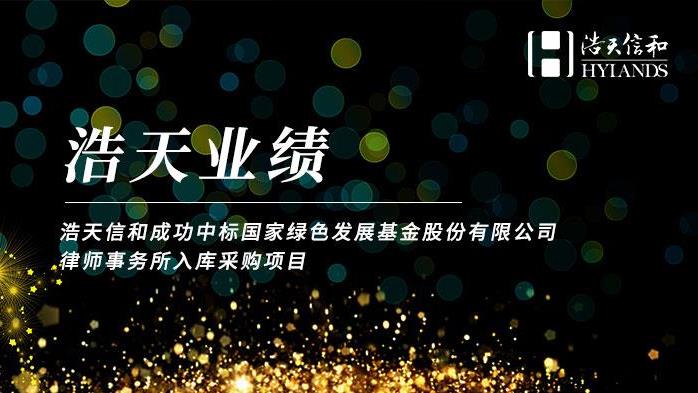 浩天信和成功中标国家绿色发展基金股份有限公司律师事务所入库采购项目