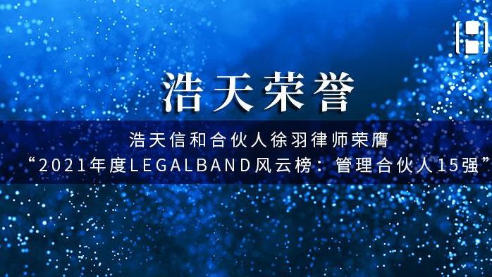 浩天信和合伙人徐羽律师荣膺“2021年度LEGALBAND风云榜:管理合伙人15强”