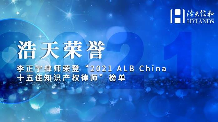 浩天信和合伙人李正宁律师荣登“2021 ALB China 十五佳知识产权律师”榜单
