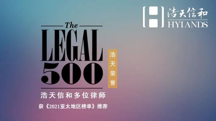浩天信和荣列《2021钱伯斯亚太法律指南》公司/商事领域榜单。