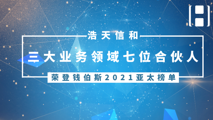浩天信和三大业务领域和七位合伙人入选2021钱伯斯亚太榜单。